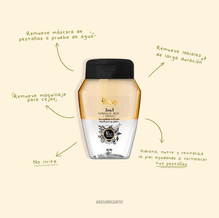 Este nuevo producto que ha lanzado Yuya a través de su marca «Bailando Juntos», es un desmaquillante bifásico, que promete retirar el maquillaje a prueba de agua, como las mascaras de pestañas y los labiales de larga duración.