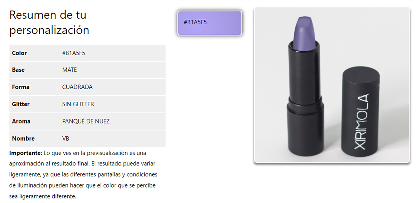 El Xirilab virtual nos ofrece la oportunidad de vivir la experiencia de crear nuestro labial sin salir de casa, es una manera muy bonita de consentirnos y tener algo único.