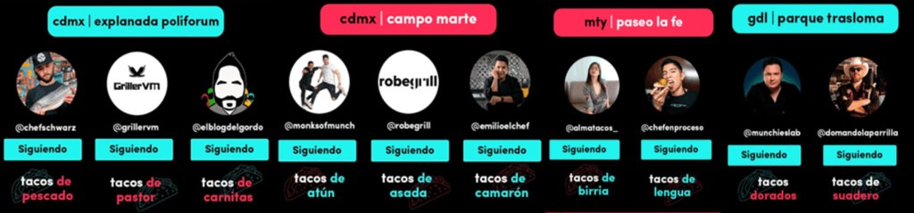 En el evento, taqueros expertos, de la mano de los top 10 creadores de contenido de food & drink de TikTok como Robe Grill, Emilio el Chef, El Blog Del Gordo, Chef en proceso, entre otros, serán los encargados de poner el toque especial y deleitarnos con tacos de pastor, carnitas, atún, asada, camarón, birria y más sabores tradicionales del país.
