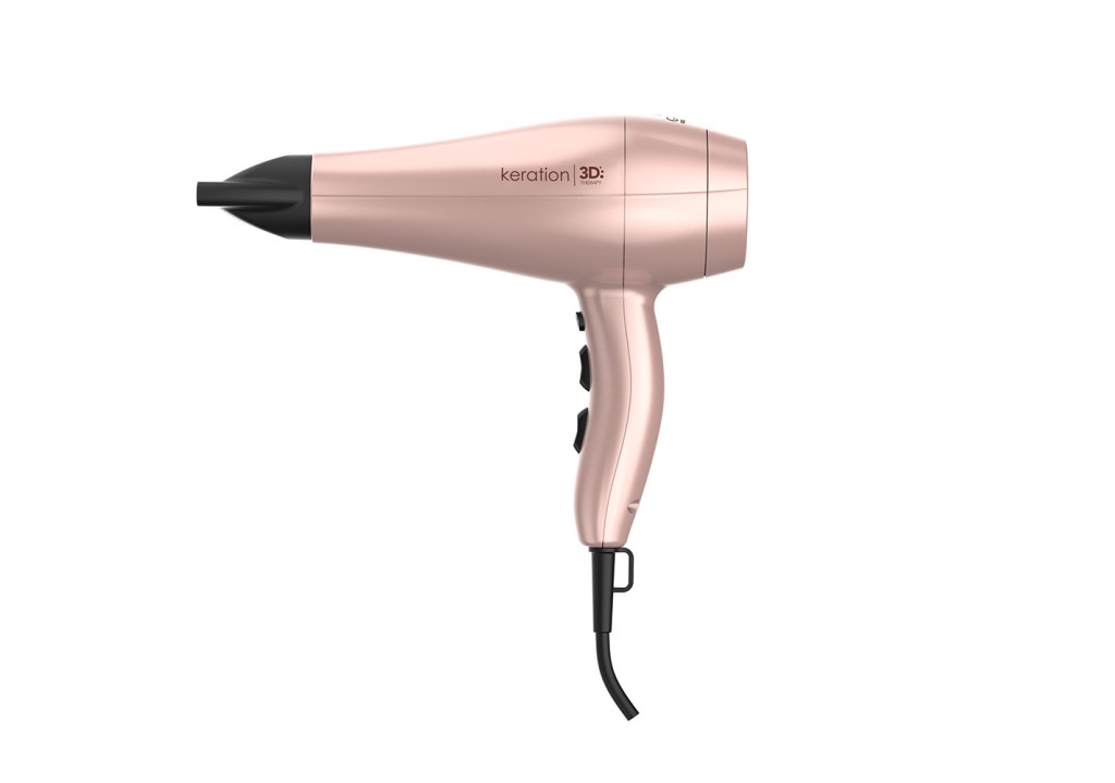 El secador Diva 3D Keration Tiene un motor AC de Alto rendimiento y uso profesional con 2.100W de potencia, alto caudal de aire, dos velocidades y tres combinaciones de temperatura, botón de aire frío y mango para colgar, es el producto ideal para el día a día, proporcionando un secado rápido y sano. Cuenta con 2 boquillas concentradoras de aire y un difusor para rizos definidos.