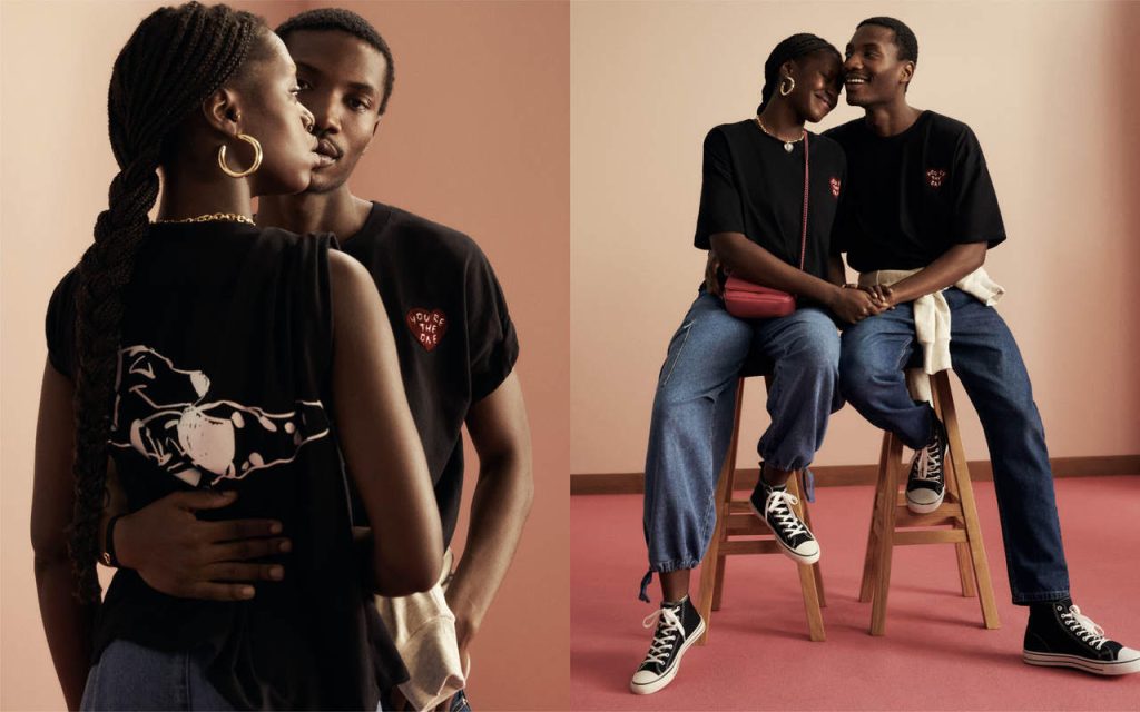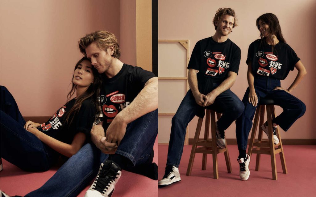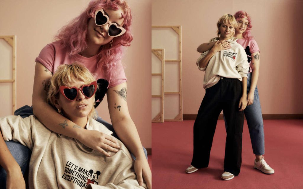 Personajes icónicos de la cultura popular cinematográfica, como Mickey Mouse, 101 dálmatas o los Osos Amorosos también se unen a la celebración con varias de las piezas especialmente diseñadas para los coleccionistas. Camisetas y sudaderas estampadas que también incluyen modernos diseños, estampados de corazones y letterings con emblemáticas frases de amor.