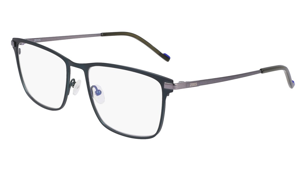 Este nuevo modelo de graduado cuenta con cristales demo AR integrados en un frontal rectangular de titanio fresado ultraligero con colores que contrastan con las varillas de titanio Beta. Las combinaciones, que juegan con esmaltes mates y galvánicos con los extremos de las varillas en colores lisos, incluyen verde mate y gris, azul mate y plata y, negro y azul, además de la opción clásica negra mate total. Los extremos de las varillas de acetato presentan una laminación personalizada en azul índigo en la parte superior, seña de identidad de la marca que acompaña el logotipo de ZEISS en las varillas.