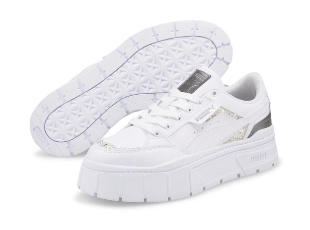 MAYZE se revoluciona para mostrar una mujer más atrevida, segura, multifacética, pero sobre todo, siempre brillante. Llega con un nuevo diseño que se convertirá en el footwear más deseado en esta temporada por las fieles seguidoras de la clásica silueta de PUMA, ya que resalta todos los elementos minimalistas que la caracterizan como la suela de plataforma que hace de los MAYZE un chunky sneaker, diseñados con detalles metálicos y glitter en la parte superior. ¡Muéstrale al mundo la estrella que eres!