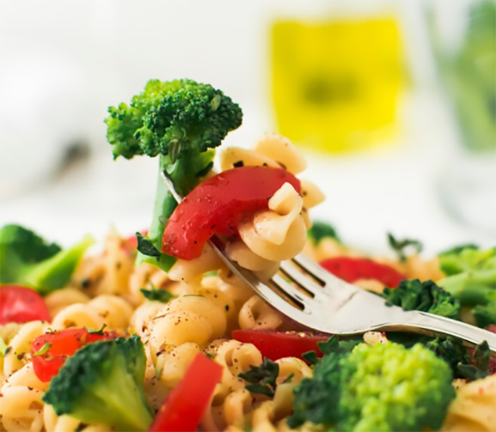 En una olla grande agrega agua, la mitad de una cebolla y sal; esto le dará sabor a la pasta. Lleva el agua a ebullición a fuego alto antes de añadir la pasta. Coloca la pasta en el agua hirviendo y remueve inmediatamente con una cuchara de madera o una espátula para evitar que se pegue; déjala entre 8 y 12 minutos hasta que se encuentre al dente. Cuando la pasta esté lista, escúrrela usando un colador, pero no la enjuagues para conservar su almidón natural. En la misma olla, mezcla la pasta con las verduras previamente cocidas, añade jugo de limón al gusto, una pizca de sal y pimienta para potenciar el sabor. Remueve bien y sirve.