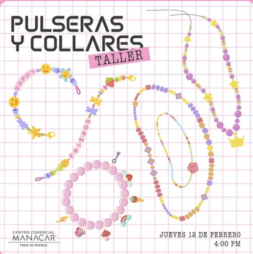 Este jueves 12 de febrero, agrégales tus cuentas favoritas, los dijes que tú quieras, y mucho más a tu brazalete y collar. La cita es en el centro comercial Manacar a las 4 de la tarde.